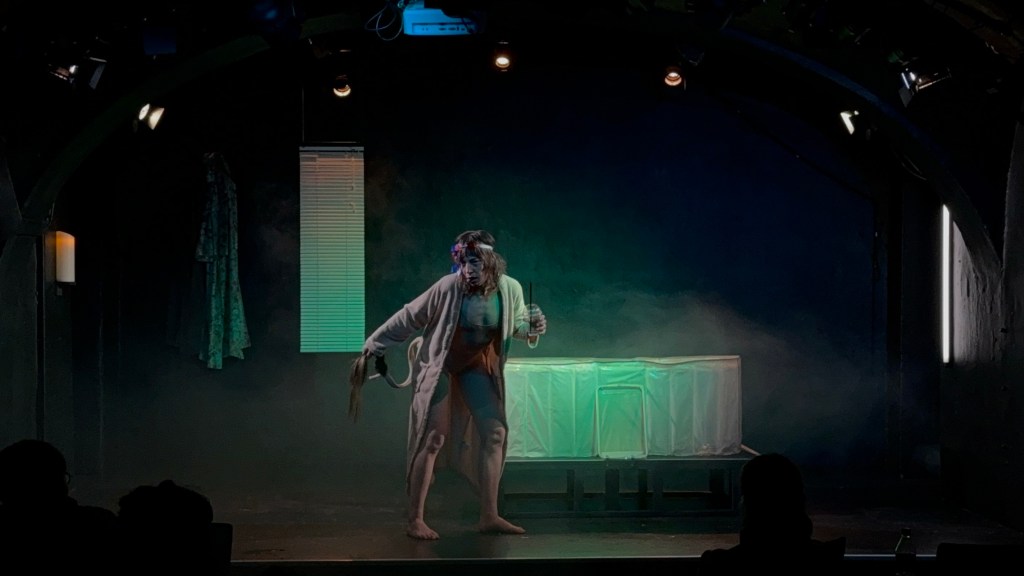 In Nine Stages of Decay betreten wir den mystischen Zwischenraum von Leben und Tod: ein Einzelzimmer im Hotel Meng Po (孟婆). Eine Nacht im Hause der Göttin des Vergessens, in der Verstorbene alle Erinnerungen an ihr vergangenes Leben ablegen. Im Bad, allein im schaumigen Sud der Unbekümmertheit, verklingt die lärmende Vergangenheit, verblassen alle Fragen – auch „Wer bin ich?“. Plötzlich kratzt es am Schloss, dreht sich der Schlüssel, knarrend öffnet die Tür. Zwei fremde Blicke treffen sich erstaunt: Fell an den Gliedmaßen, drängende Züge im Gesicht. Zu zweit im Einzelzimmer, einer zu viel, fragt ein Blick den anderen: „Wer bist du?“